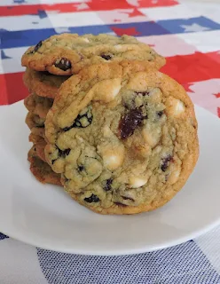 Cookies are always a big hit here. I've been tweaking this recipe since 2005 when I entered it into a local cookie contest. It's loaded with delicious dried fruit and white chocolate chips. I go with dried cherries and blueberries when I want to make the patriotic version. Do buy good quality white chocolate, there really is a difference in taste with the store brand.